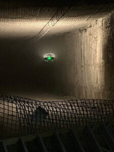CARLSBAD, N.M., June 5, 2024 – An aerial robotic system or “drone” was launched to serve as a robotic scout in an area over 2,000 feet deep inside the Department of Energy’s Waste Isolation Pilot Plant (WIPP) facility outside of Carlsbad, NM. The drone was deployed to provide the first visual inspection of an underground air exhaust passageway, or drift, that had earlier been closed to personnel.